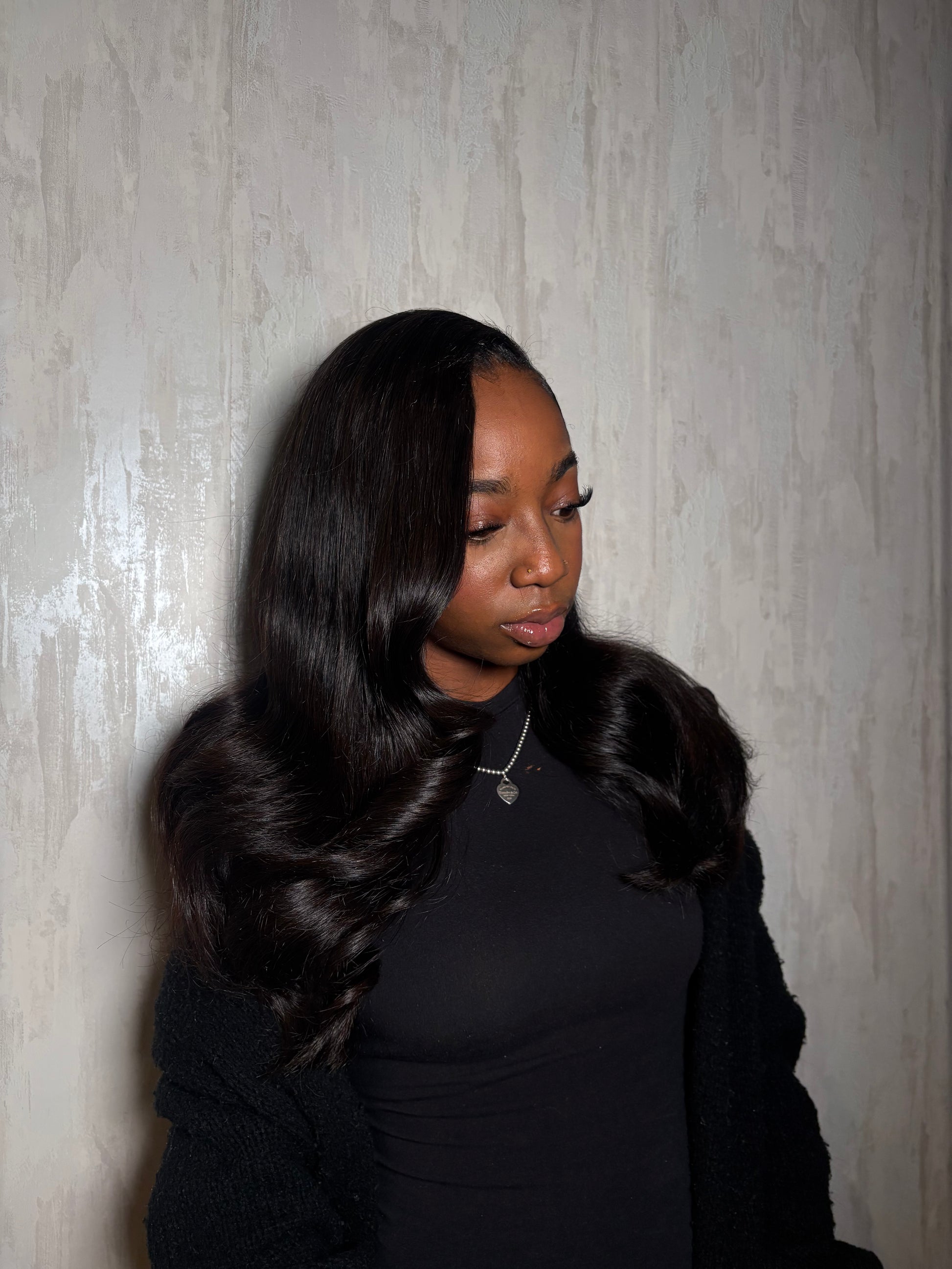 Our Raw South Indian Hair is truly unmatched. We source directly from the most exclusive temples of South India, ensuring only the finest quality strands. Naturally soft, full of bounce, and effortlessly silky, this hair represents the best of what we offer. Because it is 100% raw and unprocessed, no two bundles are ever exactly alike—one may carry a looser wave, another a slightly lighter tone. This hair can be professionally dyed and lifted all the way to 613 blonde, and each bundle is thick and healthy from weft to tip.